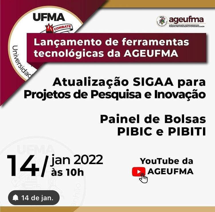 Inclusão da inovação no Sigaa Projetos da UFMA será realizada na sexta-feira, 14, pelo canal da Ageufma no Youtube