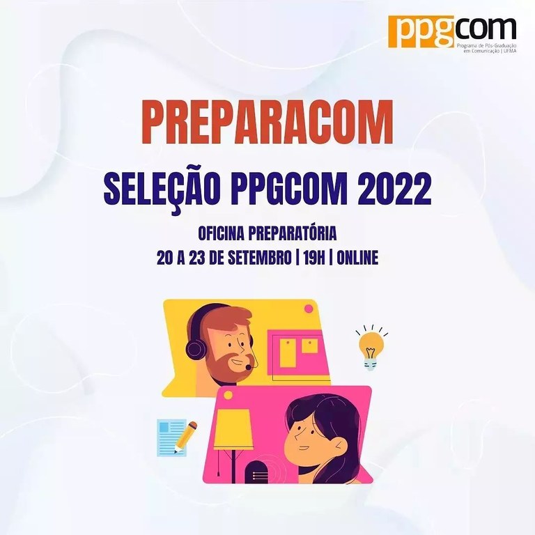 Serão quatro oficinas ministradas por mestrandos e docentes para apresentar o programa, as linhas de pesquisa, orientações e tirar dúvidas sobre o processo seletivo. Mais informações estão disponíveis no Instagram do PPGCom, @ppgcomufma.itz.