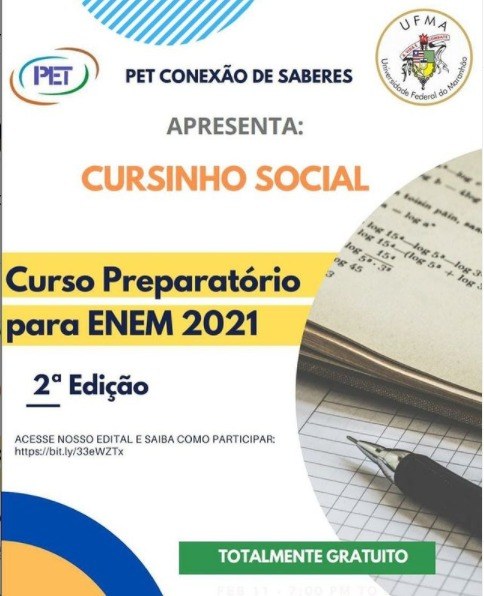Até o dia 26 de maio, estão abertas as inscrições para a segunda edição do processo seletivo do curso preparatório para o Exame Nacional do Ensino Médio (Enem), promovido pelo programa de Educação Tutorial (PET) Conexões de Saberes do Câmpus de Imperatriz da Universidade Federal do Maranhão. Ao todo, são disponibilizadas 60 vagas e mais 60 para o cadastro de reserva, destinado a alunos oriundos de escolas públicas, que tenham finalizado o Ensino Médio, ou que ainda estejam cursando o terceiro ano do Ensino Médio, desde que não estejam matriculados em outro curso preparatório para o Enem ou curso de graduação.