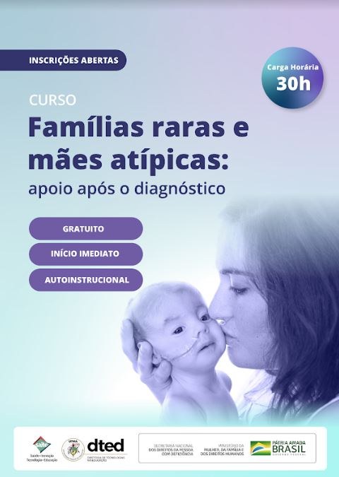 Com o intuito de abordar os desafios e as vivências das pessoas com condições raras de saúde e seus familiares, a Diretoria de Tecnologias na Educação (DTED) da Universidade Federal do Maranhão, em parceria com o Ministério da Mulher, da Família e dos Direitos Humanos (MMFDH), lança o curso "Familias raras e mães atípicas: apoio após o diagnóstico". A capacitação é gratuita, tem início imediato, e as matrículas podem ser realizadas por meio da plataforma saiteava.org.