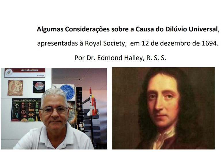 Publicado no ano de 1694, o artigo científico “Algumas Considerações sobre a Causa do Dilúvio Universal”, escrito pelo astrônomo, geofísico e matemático inglês Edmond Halley para a Royal Society — academia científica independente do Reino Unido — foi traduzido no domingo, 29 de janeiro, por Sérgio Luis Araújo Brenha, docente do curso de Biologia do Câmpus São Luís, que descobriu relatos intrigantes de Halley sobre a causa de um possível dilúvio mundial há milhares de anos, no planeta Terra.