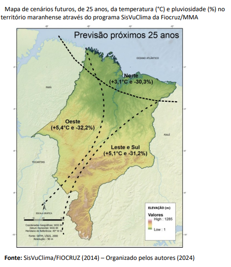 Segundo os resultados da pesquisa, nos últimos sessenta anos, no Maranhão, já houve um aumento de sua temperatura média em +0,9 °C e uma redução em seus volumes de chuvas anuais que variaram de -250 mm a -600 mm, a depender de sua localização territorial.