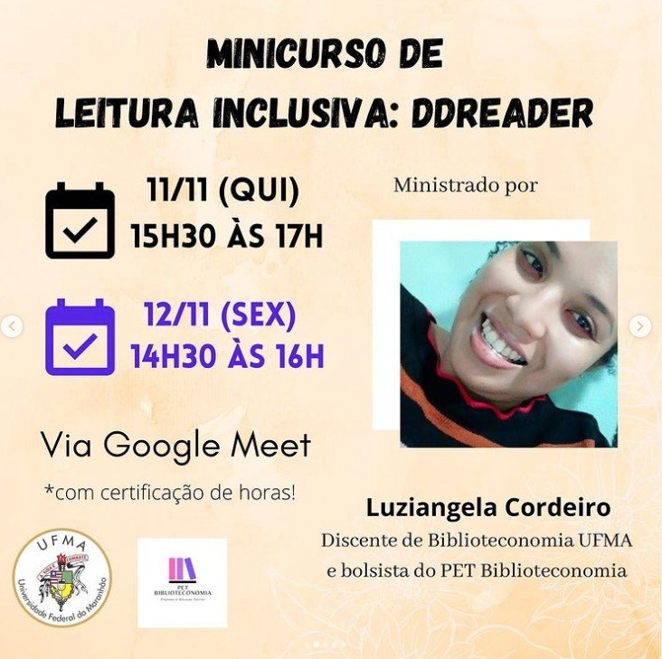 Outras informações podem ser obtidas por meio do Instagram @petbiblioufma e/ou pelo site do PET Biblioteconomia.