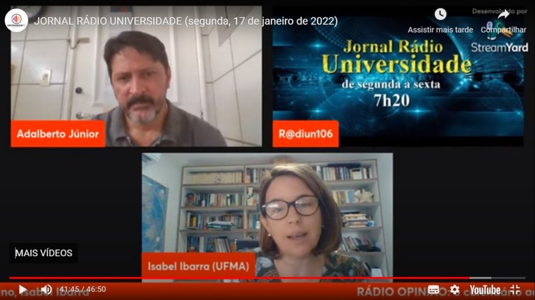 Na manhã do dia 17 deste mês, a pró-reitora de Ensino da Universidade Federal do Maranhão, professora Isabel Ibarra, participou de uma entrevista no quadro Rádio Opinião, do Jornal Rádio Universidade, da Universidade FM 106,9 para comentar o calendário acadêmico da UFMA para o primeiro semestre de 2022.