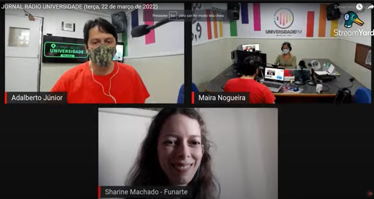 O Programa Rádio Opinião da Rádio Universidade FM 106,9 teve como tema nesta terça, 22, o lançamento de dois editais da Fundação Nacional de Artes (Funarte) para o credenciamento de profissionais na avaliação de projetos artísticos e para a ministração de cursos, oficinas e treinamentos. Para falar sobre o assunto, o programa contou com a participação da representante regional substituta da Funarte, Sharine Machado.