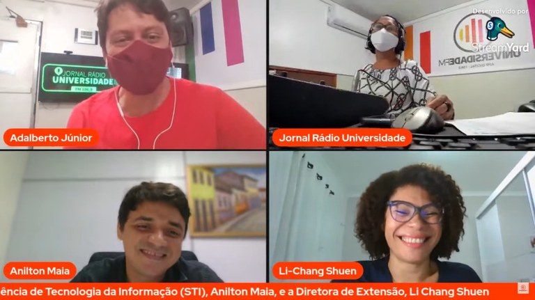 O programa Rádio Opinião, da Rádio Universidade FM 106,9, de quinta-feira, 3, teve como entrevistados o superintendente de Tecnologia da Informação, Anílton Maia, e a diretora de Extensão da Pró-Reitoria de Extensão e Cultura (Proec), Li-Chang Shuen, para falar sobre a pesquisa de satisfação com o ensino remoto na Universidade Federal do Maranhão. Na entrevista, foram destacados pontos sobre a presença da comunidade acadêmica, a prorrogação do período de pesquisa e também sobre o resultado parcial que foi divulgado pela Diretoria de Comunicação no mesmo dia.