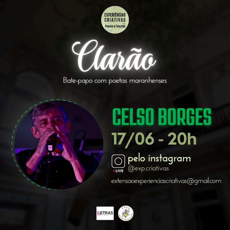 O projeto de extensão “Experiências Criativas – Poesia e Fanzine”, do Centro de Ciências de Bacabal, iniciou, no dia 9 deste mês, o evento “‘Clarão’ – Bate Papo com Poetas Maranhenses”, com transmissão ao vivo no Instagram exp.criativas. Com o teor voltado para o diálogo com literatos maranhenses sobre o fazer poético, a iniciativa visa dar visibilidade para escritores com produções de suma importância no estado, colocando em mobilidade a poesia, que, muitas vezes, não é reconhecida.