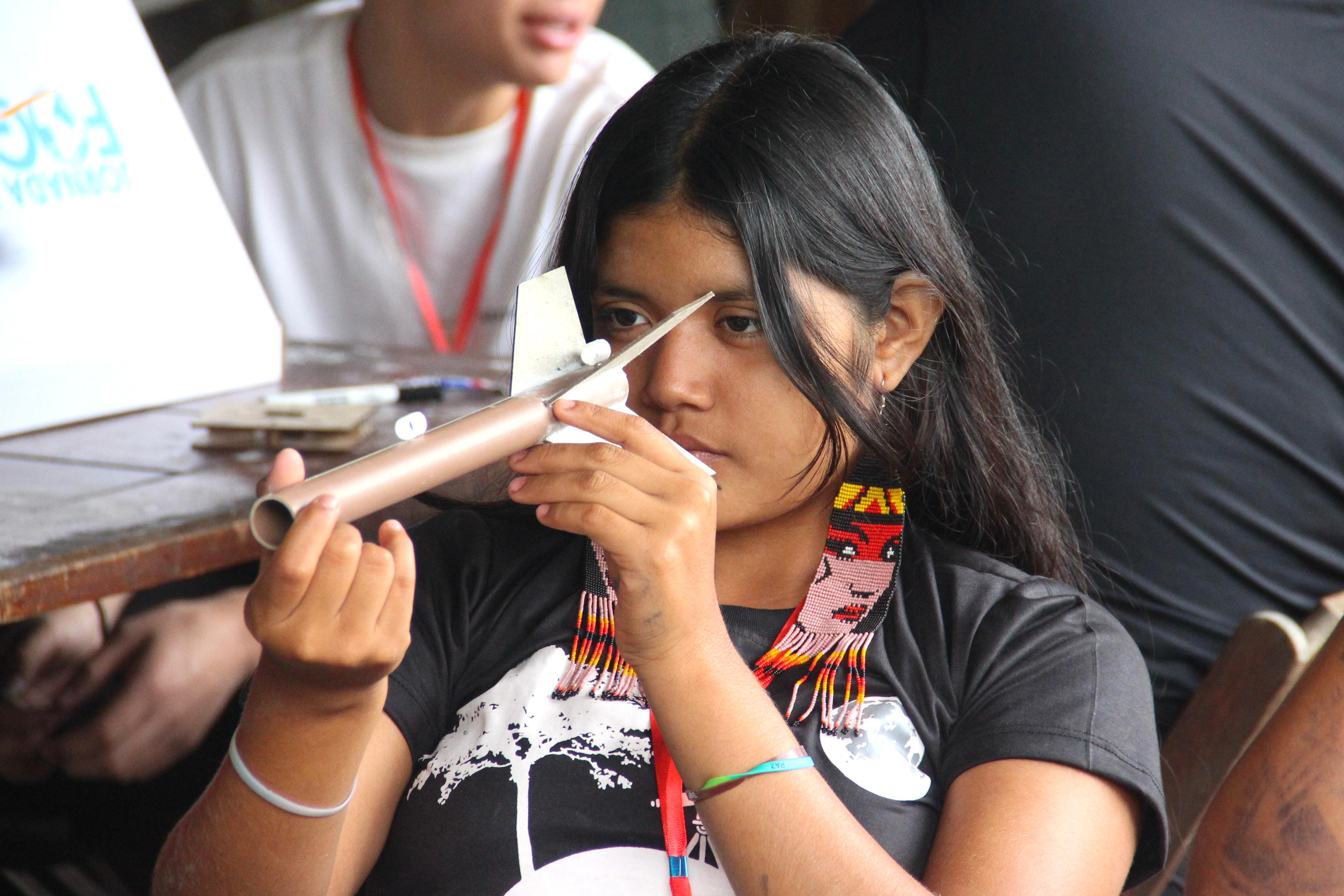 “Dentro do projeto, temos várias atividades. Uma delas é a astronáutica, que faz parte das oficinas de foguetes. Construímos essas oficinas visando à Mostra Brasileira de Foguetes e à nossa participação na Jornada de Foguetes com os alunos indígenas. Para a construção de foguetes, nós ensinamos vários conceitos da ciência: de química, de física; isso ajuda com que compreendam a aerodinâmica, a relação de espaço e ciência”, reforçou Daniely.