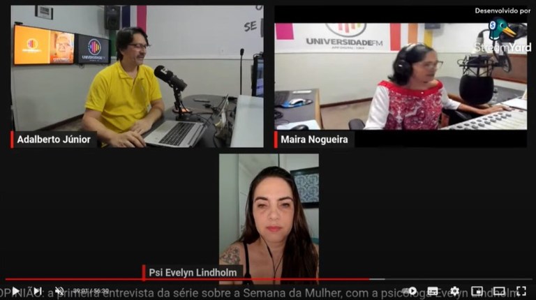 A Rádio Universidade FM 106,9 recebeu, na segunda-feira, 6, a psicóloga Evelyn Lindholm, no quadro Rádio Opinião, para a primeira entrevista de uma série realizada em alusão à Semana da Mulher. O Dia Internacional da Mulher, a ser comemorado amanhã, dia 8 de março, marca a luta das mulheres pelos seus direitos. Nesse contexto, a psicóloga aborda os diversos problemas ainda enfrentados pelas mulheres na contemporaneidade.