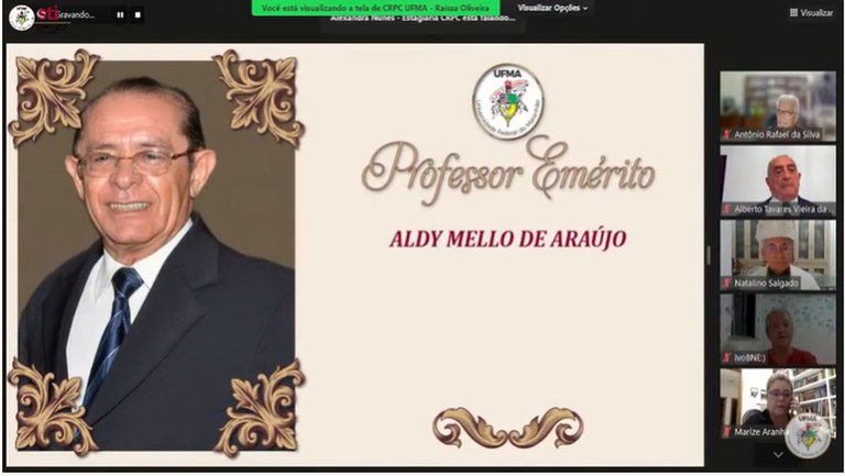 A Universidade Federal do Maranhão realizou, na sexta-feira, 29, com transmissão ao vivo pelo Canal Institucional da UFMA no Youtube, a solenidade de entrega do título de Professor Emérito, concedido aos docentes da Universidade pelos altos méritos profissionais e por relevantes serviços prestados à instituição. Quinze professores, das mais diferentes áreas do conhecimento, foram agraciados com o título. A solenidade contou, ainda, com a apresentação da cantora, professora do curso de Comunicação Social e diretora da TV UFMA, Cecília Leite.