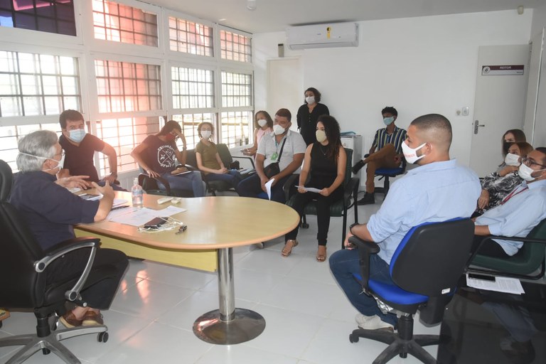 Na tarde de sexta-feira, 10, o reitor Natalino Salgado se reuniu com estudantes de Enfermagem do Câmpus de São Luís para receber as principais demandas e dialogar sobre melhorias para o curso, em que foi debatido sobre aulas práticas nas unidades de saúde do estado e do município, a reestruturação do laboratório, a verificação do andamento das obras do prédio de Enfermagem e o acesso de discentes em vulnerabilidade socioeconômica aos Equipamentos de Proteção Individual (EPIs).