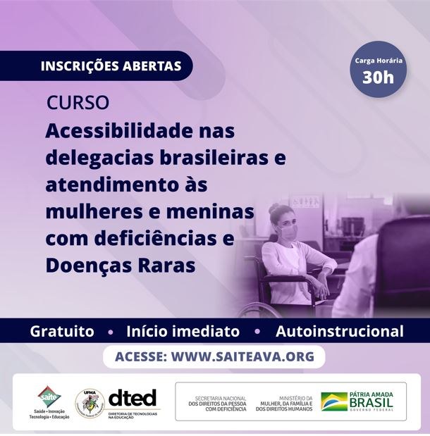O objetivo é oferecer, nos serviços de segurança pública, assistência adequada à população feminina com deficiência, de modo a salvaguardar os direitos e as liberdades fundamentais dessa parcela da sociedade. As matrículas podem ser realizadas por meio da plataforma Saite AVA. O curso é gratuito, ofertado na modalidade a distância (autoinstrucional) e tem início imediato.