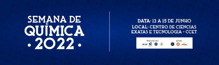 A Semana de Química 2022, entre os dias 13 e 15 deste mês no Centro de Ciências Exatas e Tecnologia (CCET), foi realizado com objetivo de trazer discussões recentes no âmbito acadêmico e científico, além de recuperar a experiência de um evento acadêmico presencial. O evento foi destinado aos estudantes de Química, Engenharia Química e Química Industrial.