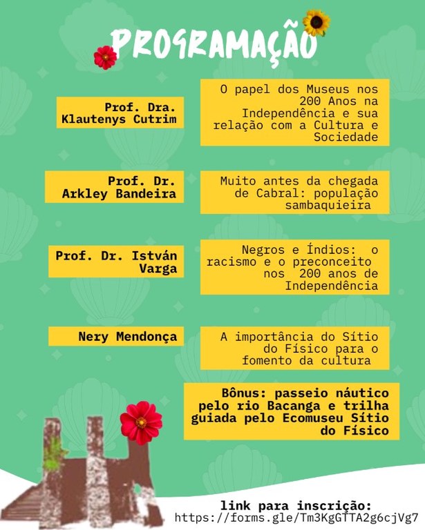 Nesse sábado, 17, o Ecomuseu Sitio do Físico, localizado no bairro do São Cristóvão, na cidade de São Luís, em parceria com programas de pós-graduação em Cultura e Sociedade (PGCult) e em Saúde e Meio Ambiente (PPGSA), realizará uma roda conversa sobre 200 anos de Independência, racismo e museologia, em alusão à 16ª edição da Primavera dos Museus.