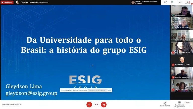 Em seguida, o palestrante convidado da mesa de abertura, Gleydson Lima, CEO da ESIG Software, inventor e principal autor do sistema acadêmico SIGAA/SIG, que é utilizado por mais de 40 universidades e institutos federais do Brasil, incluindo a UFMA, falou sobre o tema “Da Universidade para todo o Brasil: A história do grupo ESIG”.