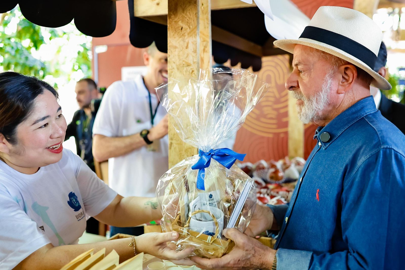 CEO da Biomaré, Thoya Yoshikawa, apresenta a startup para o presidente Lula. Foto: Ricardo Stuckert