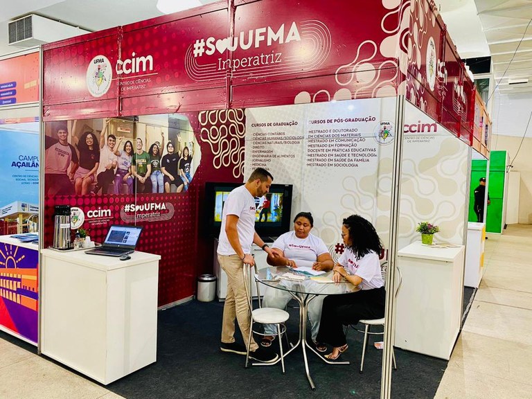 A programação no estande da UFMA Imperatriz teve início na segunda-feira, 16, às 13h, com a apresentação institucional realizada pelo Núcleo de Comunicação do Centro de Ciências de Imperatriz (CCIM), por meio de vídeos, adesivos e panfletos que explicam sobre o papel da Universidade Federal do Maranhão na produção de ciência e tecnologia em Imperatriz e região.