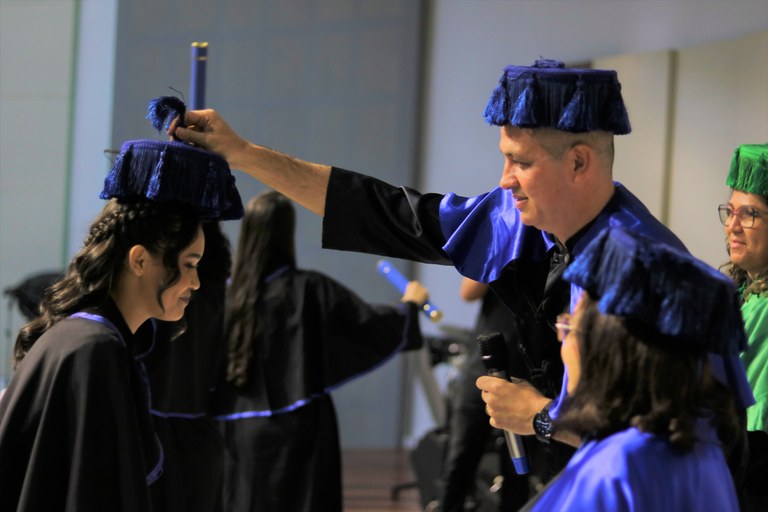 O momento de celebração contou com discursos tocantes e encorajadores para os formandos, assim como foi falado de responsabilidade para com suas futuras profissões. Em comemoração, Alessandra Caroline, do curso de Enfermagem, falou da sua gratidão e dos desafios do processo. “Chegar a este momento é uma realização muito grande, a gente vem de cinco anos e meio de curso, que atrasou um pouco por causa da pandemia, então conseguir essa graduação é muito gratificante”, destacou.