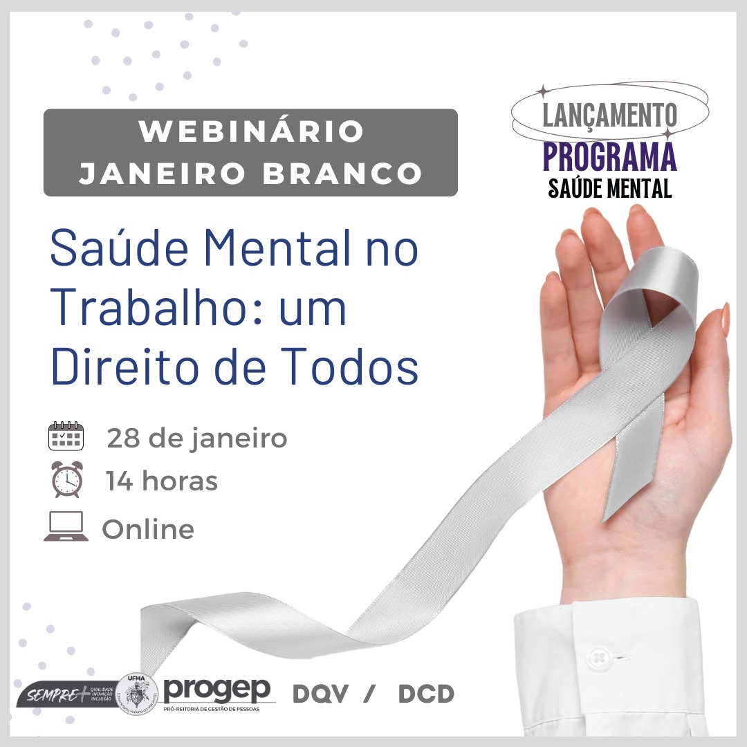 O Janeiro Branco é uma iniciativa criada em 2014, que surgiu como uma resposta à necessidade de promover reflexões sobre a vida e as relações, além da conscientização para manter os cuidados com a saúde mental cotidianamente, especialmente, no início do ano. Pensando nisso, o webinário com a temática “Saúde Mental no Trabalho: um direito de todos” discutirá as políticas públicas existentes para a melhoria dessa demanda e o que ainda precisa ser melhorado.
