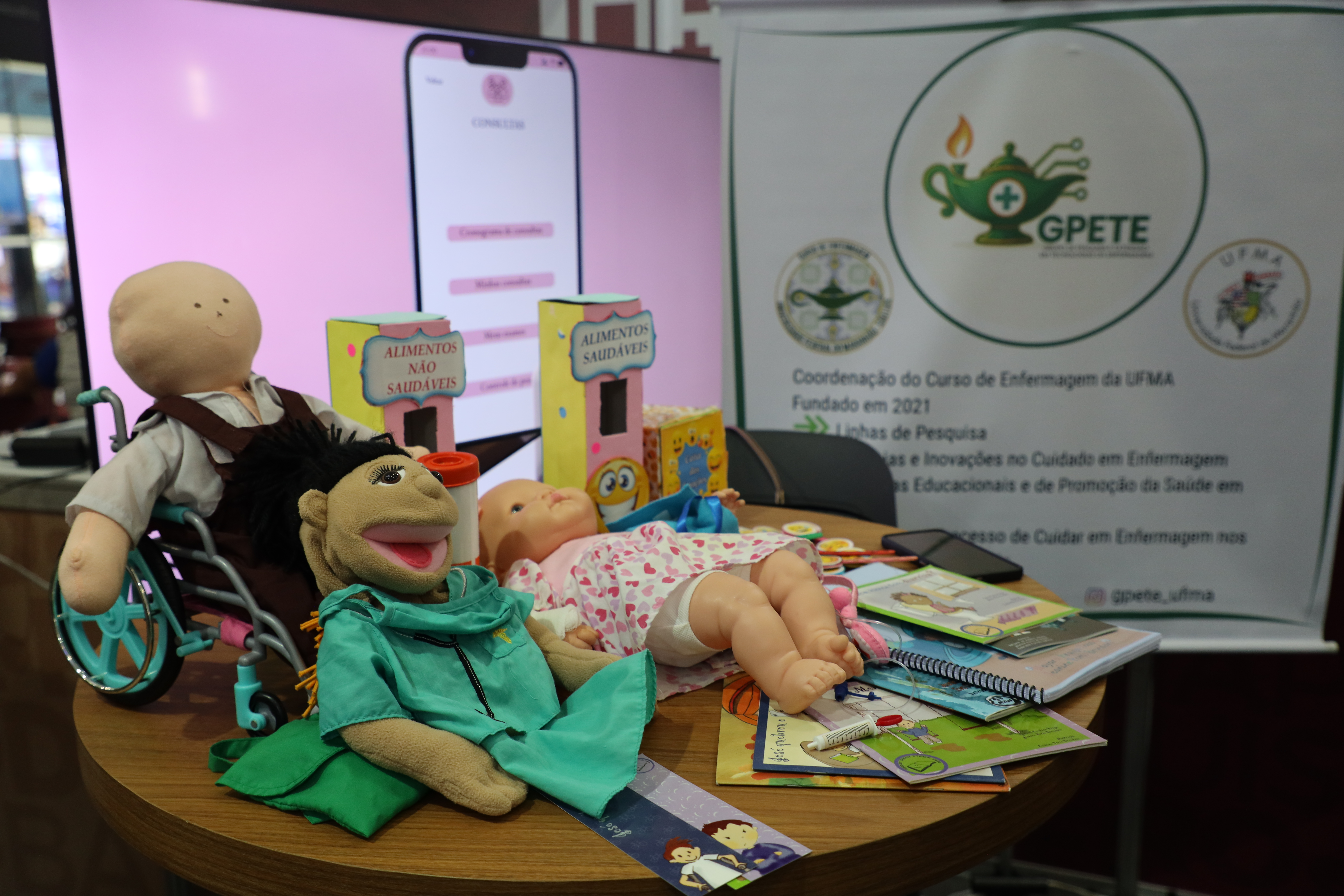 Entre os destaques do evento, o Grupo de Pesquisa e Extensão em Tecnologias da Enfermagem (GPETE) apresentou iniciativas voltadas à promoção da saúde e inovação no cuidado, com trabalhos que integram pesquisa, extensão e tecnologia. Um dos projetos expostos aborda o uso do brinquedo terapêutico como estratégia de cuidado e acolhimento à criança em contextos hospitalares, promovendo o bem-estar emocional durante procedimentos e acompanhamentos clínicos.
