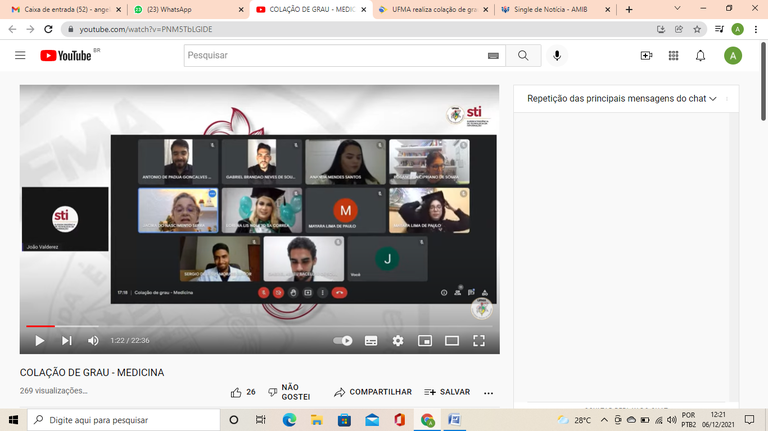 UFMA realiza Colação de Grau Especial de Medicina via videoconferência, referente ao segundo semestre de 2021
