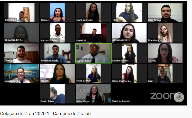 Na quarta-feira, 14, ocorreu a solenidade de colação de grau virtual dos estudantes dos cursos de Licenciatura em Ciências Humanas – Geografia e Ciências Naturais – Química do Câmpus Grajaú, referente ao primeiro semestre de 2020. Ao todo, 24 formandos receberam a outorga de grau, sendo eles dezoito do curso de Geografia e seis de Química.