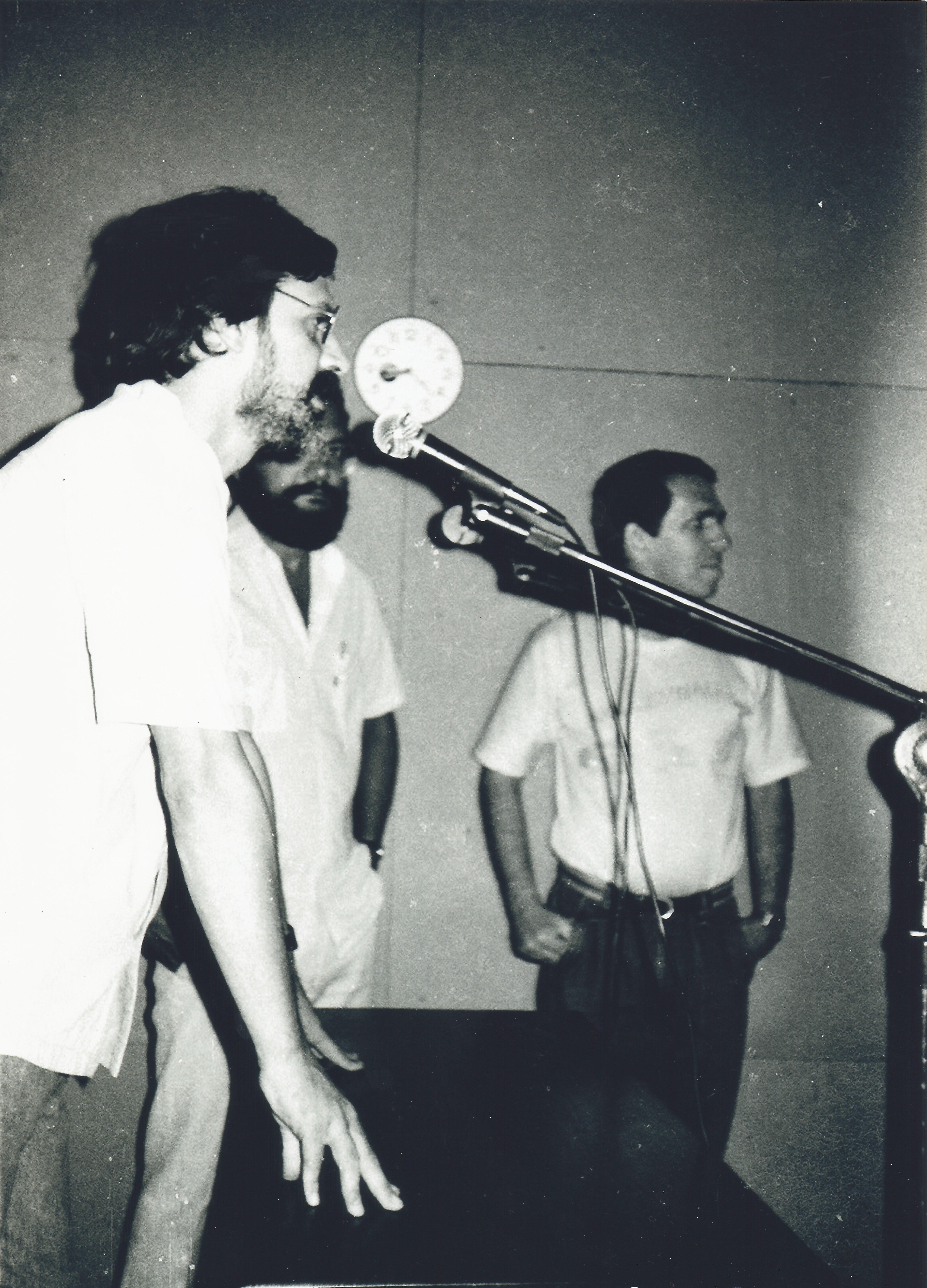 Inauguração da Rádio Universidade, em 1986 - Professor Guilherme Rezende (Jornalismo) e Carlos Alberto de Sá Barros (Diretor)