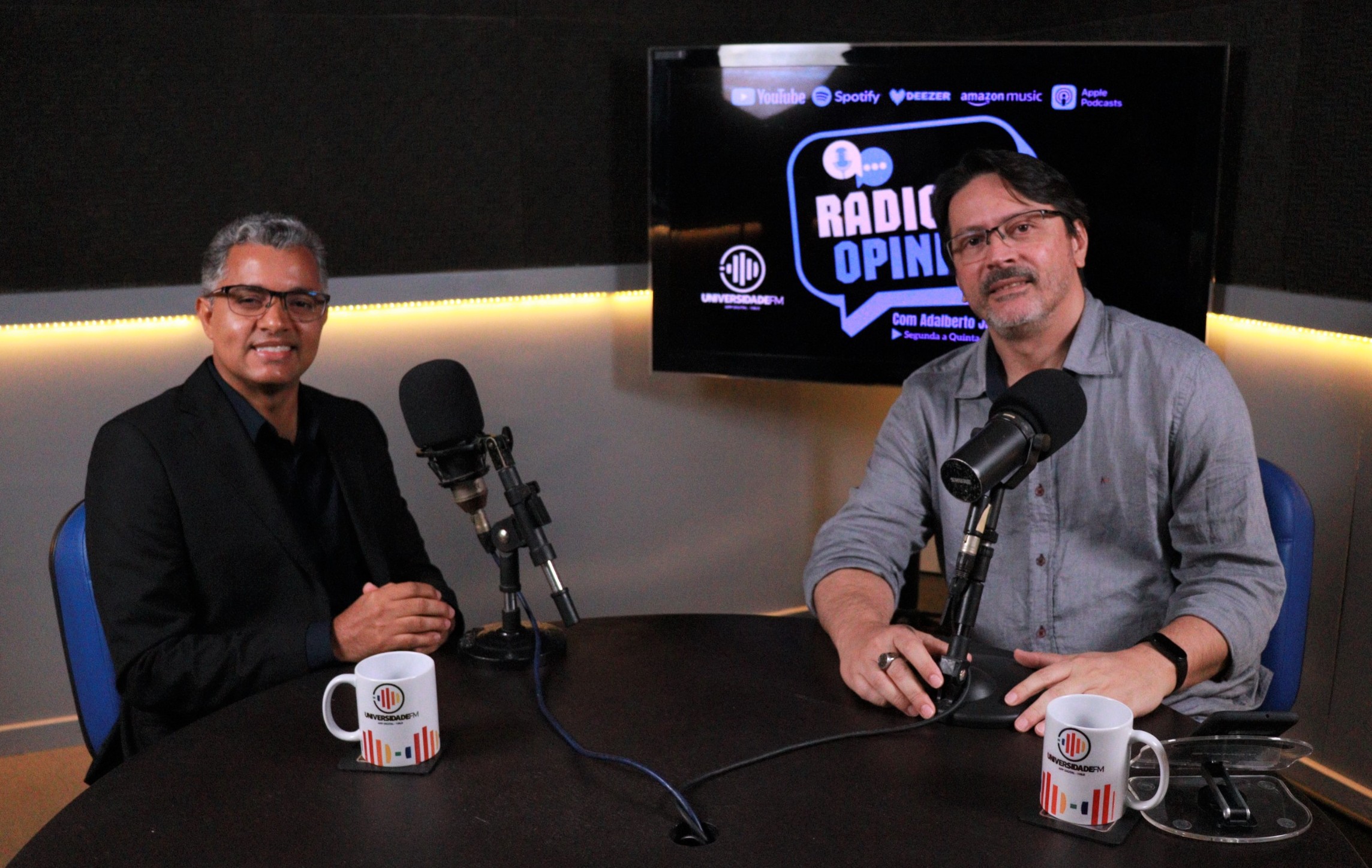 Isaque Costa e o jornalista Adalberto Júnior, durante entrevista na Universidade FM